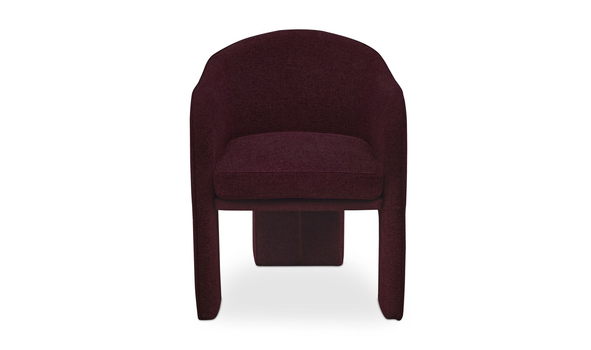 Fully upholstered in easy-to-clean performance fabric and generously sized, the Alara dining chair is all about comfort with a thoughtfully rounded back and gently curved armrests that add a touch of elegance. The sleek and minimalistic 3 legged base provides a clean and refined foundation.